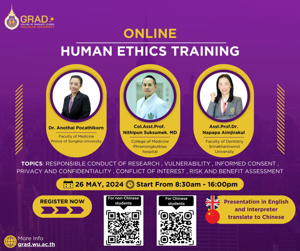 ม.วลัยลักษณ์ จัดอบรมหลักสูตร จริยธรรมวิจัยในมนุษย์ ประจำปีงบประมาณ 2569
